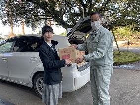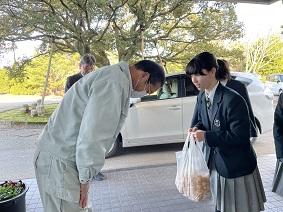 最後に、生徒が代表してお礼の言葉と本校の加工品をお渡ししました。