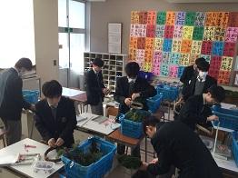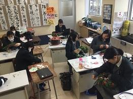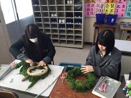さて、「生物活用」・「園芸デザイン」の授業では、クリスマスリースの作成に入りました。
