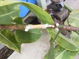 樹液が出てきますので、水できれいに洗い流します。