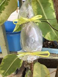 その後は、ビニール袋で包み込み、上下をビニールひもで結びます。