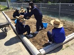 そこで、第2弾として、生物資源コース園芸福祉分野の3年生が、造成した花壇の「石拾い」と「土入れ」を行いました。