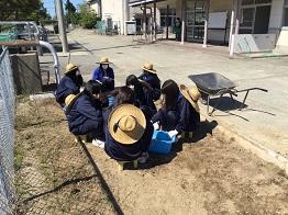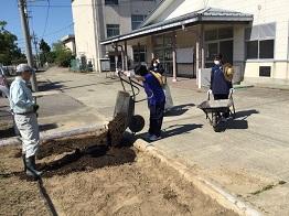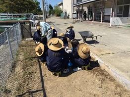 学校で栽培した鉢物の不要になった用土を再利用しました。