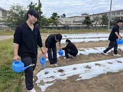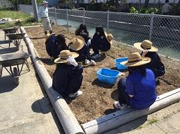 生物資源コース2年次生と一緒にさつまいもを植えました。