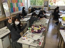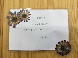 押し花に使った新聞を使って切り抜きでメッセージを入れた生徒もいました。