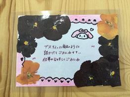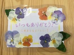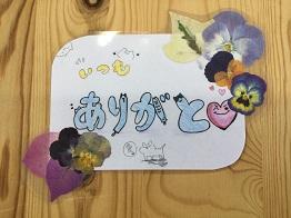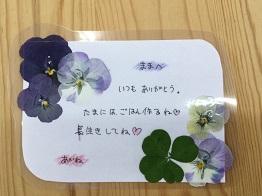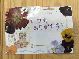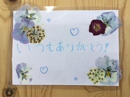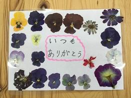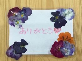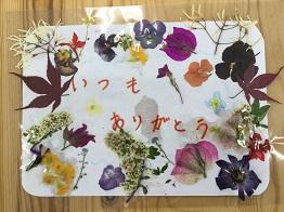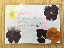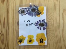 「押し花」を使って、日頃お世話になっている保護者の方に感謝の気持ちを伝えようということでメッセージカードを作りました。