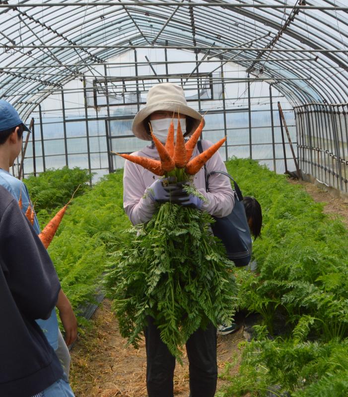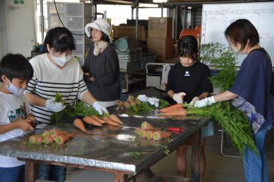 にんじんは、1人6本引きで、太さと長さは抜いてからのお楽しみ。