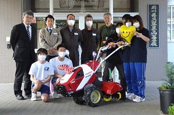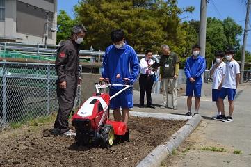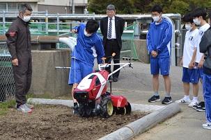 この耕耘機は、生徒の授業や実習、生物資源研究会の部活動などで利用させていただきます。