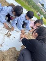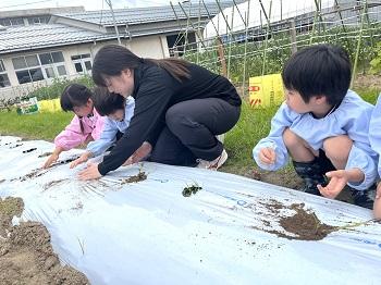 さつまいもを植えた後、ゲームをしました。