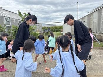 園児たちも一生懸命に高校生の話を聞いて頑張っていました。