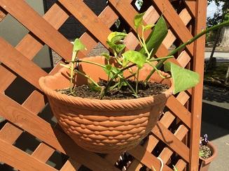 挿し芽で発根させた、「ポトス」、「オリヅルラン」、「サツマイモ」は挿し床から苗を取り出し、植えていきます。