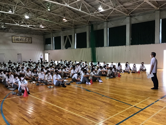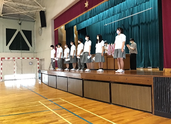 終業式後に国語科の南部 義明先生の離任式が行われ、お別れの言葉を頂き拍手で見送りました。
