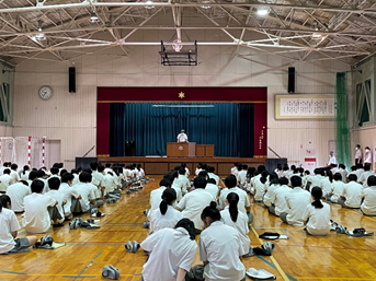7月29日(金)熱中症警戒アラートが発表される中、180人の中学生が参加し体験入学を開催しました。校長先生の挨拶、教頭先生からの学校説明の後、5つの体験実習に分かれ色々な体験をしてもらいました。