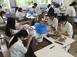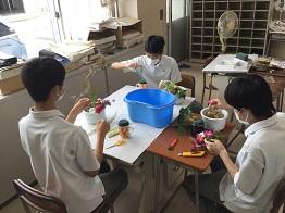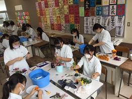さて、今日、3年生の「生物活用」の授業では、フラワーアレンジメントの実習が行われました。