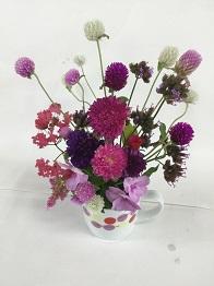 まずは、取ってきた花を並べて、自分の構想通りに作れるか思いを馳せます。