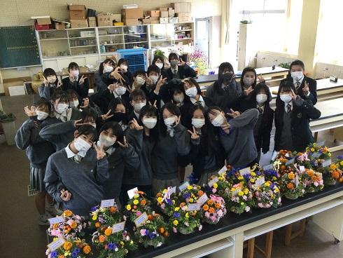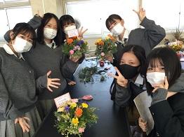 今日は、3年園芸福祉コースの生徒に、フラワーアレンジメントを作ってもらいました!