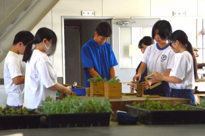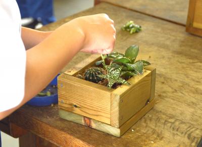 生物資源コースの「手作りプランターに多肉植物を寄せ植えしよう!」では、