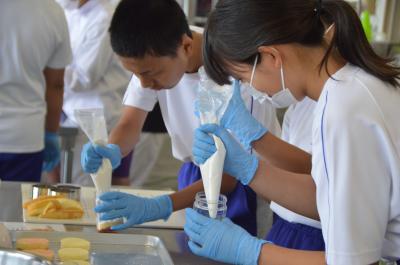 スポンジケーキとジャーショートケーキの作り方を高校生から習い、
