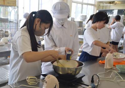 食品科学コースの「高校生と作ろう!ジャーショートケーキ」では、