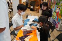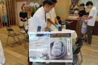 小学生に大人気で、自分の好みの餡を選んで大福の包餡を体験して、持ち帰っていただきました。