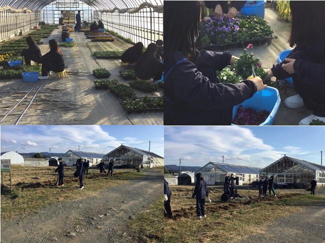 生物資源コース(園芸福祉分野)は、草花温室で鉢花の管理作業や温室前の畑の整備を行いました。