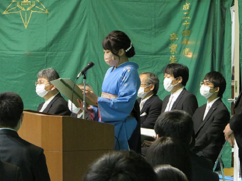 式は、鷲澤校長先生の式辞、六星同窓会 本会長の祝辞、在校生代表の森 信之佑さんの送辞、卒業生代表の勝田 真心さんの答辞と続き、3年間の思いを振り返る卒業式となりました。