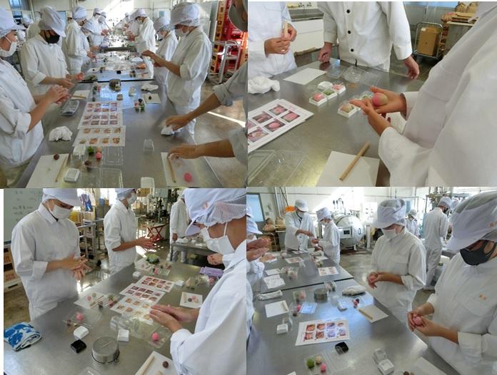 ものづくりマイスターである橋爪先生から、職人の技をわかりやすく教えていただき、生徒たちは、上生菓子の製造に取り組みました。