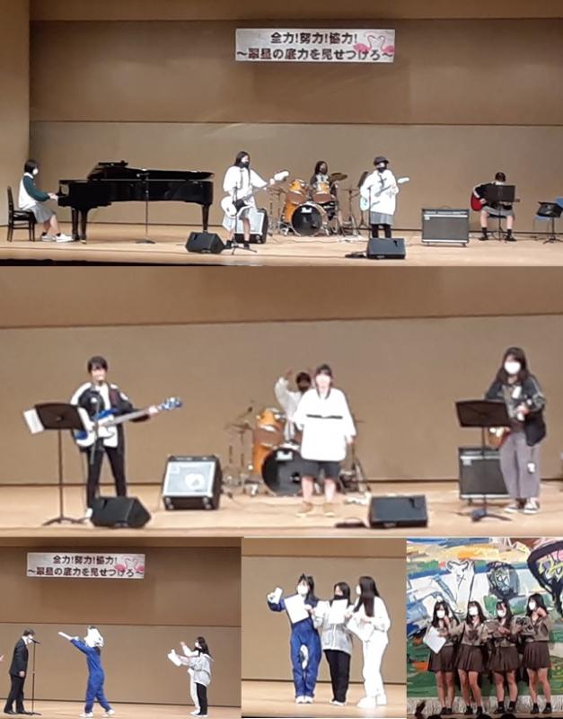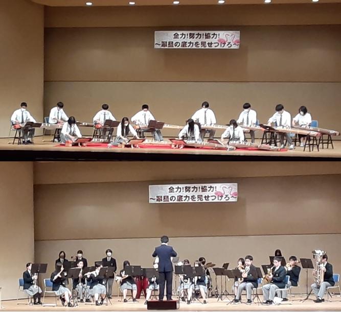 3年邦楽選択者による琴の演奏(上) & 吹奏楽部の演奏(下)