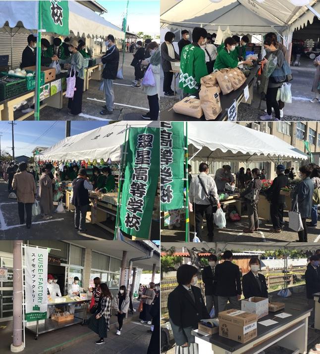 両手に一杯の荷物を抱え、笑顔で帰っていくお客様、一生懸命に呼び込みや誘導する生徒たち、笑顔で接客する生徒たち、いつもの学校生活と違う翠星高校の風景が見られました。