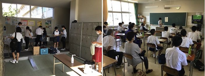 発表は第一体育館で行われ、新型コロナウイルス感染対策をとり、教室のオンライン中継による視聴も設けられました。