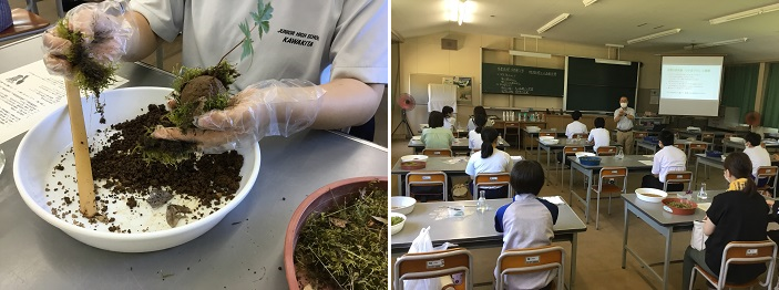 <環境科学コース(造園分野)「苔(こけ)玉製作」の様子>
