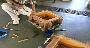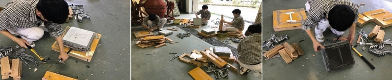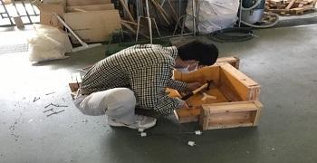 3回目のマイスター実技指導では、前回の実技指導で作成した型枠材料を組み立て、型枠の完成を目指しました。