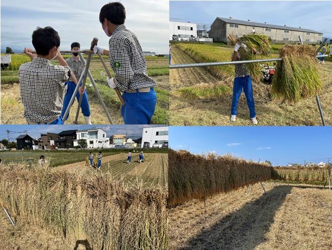 昔ながらの作業ですが、生徒たちは稲架の設営から刈り取り、稲架掛けまでの一連の作業に一生懸命、取り組みました。