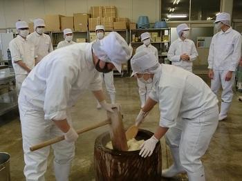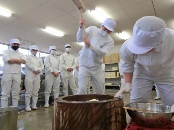 3年生は最後の実習となり、一人ひとり思いを込めて餅をついていました。