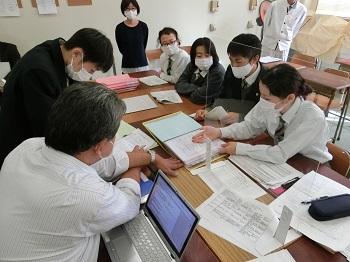 今日の午後は、時折小雨が混じる中、3年生の総合実習が行われていました。