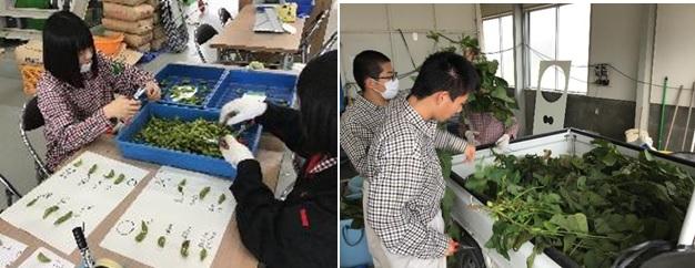 生物生産棟内では、作物班が、丹波黒豆(枝豆)の選別作業とコメの袋詰め作業を行っていました。