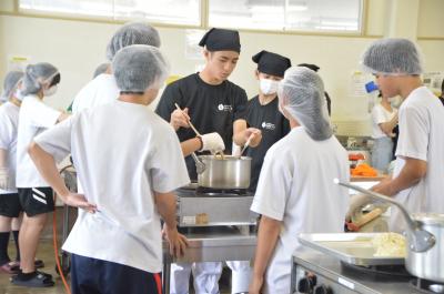 食品科学コースは、「高校生と作ろう!翠星味噌ラーメン」。