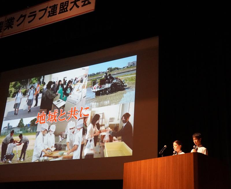開校式では、農業クラブ役員3年の日野さん、直江さんが学校紹介を行いました。
