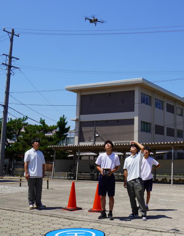 環境科学コース環境設計分野は「ドローン操縦見学」