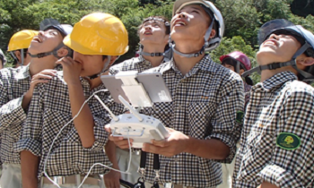 また、地元企業「竹腰永井建設株式会社」の御協力のもと、小型重機やドローンの操縦を体験しました。丁寧なご指導ありがとうございました。