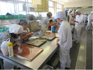 本校の人気商品「翠星クッキー」の生地を使って、手型クッキーづくりの実習を体験しました。