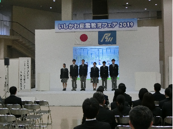 報告が遅れましたが、10月20日(日)に、石川県産業展示館2号館で、「いしかわ産業教育フェア2019」が開催されました。本校生徒は、ステージ発表(農業部会研究発表・産学連携人材育成事業)、体験コーナー(丸いもマフィン教室)、農産物の販売、農業高校の展示紹介など、たくさんの企画の発表・運営を行い、来場者に、農業高校の魅力をアピールしました。