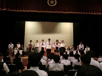 6月17日(月)、体育館で本校の農業クラブ意見発表大会が行われました。1年生は各クラス、2・3年生は各コース、分野から選ばれた代表の生徒はこの日のために、たくさん練習をし、本番に臨みました。