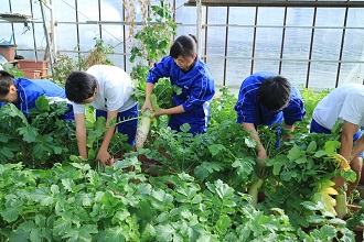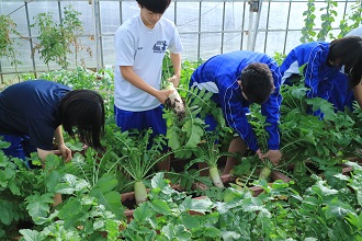 1年生は「農業と環境」という授業でダイコン栽培プロジェクトを行っています。9月の上旬から「石川源助」と「耐病総太り」の2品種の栽培をはじめ、今週ようやく収穫をすることができました。