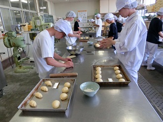 夏季休業中、食品科学コースの2年次生が、手ごねバターロールの製造実習を行いました。手でこねてパンを作るのはとても大変ですが、3日間のパン実習で、生徒たちはどんどん上達し、パンの製造技術を身につけることができました。