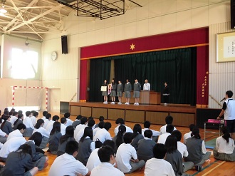 9月28日(金)に、後期生徒会役員任命式、表彰伝達式、農業クラブ全国大会出場者の壮行式が行われました。生徒会役員・農業クラブ全国大会出場者の今後の活躍を期待しています。表彰された生徒は更なる飛躍を目指して勉強や部活動に励んでください。