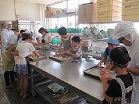 9月10日(日)に農場親子体験第三弾としてクッキー教室を開きました。今回は翠星高校の人気商品「翠星クッキー(手型クッキー)」と、卵を使わず白山米粉を使用した「パートシュクレ(型抜きクッキー)」の2種類のクッキーを作りました。翠星クッキーでは事前に準備された生地を決められた個数・大きさになるように一生懸命成形し、型抜きクッキーでは生地から始めてとても楽しそうに好きな形のクッキーを作ることができました。