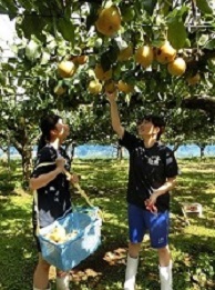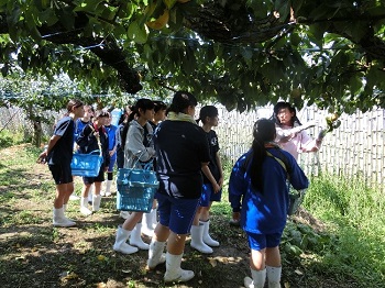 9月9日(土)に食品科学研究会の生徒が、松任梨の生産者である南さんの梨園に梨狩りに行きました。