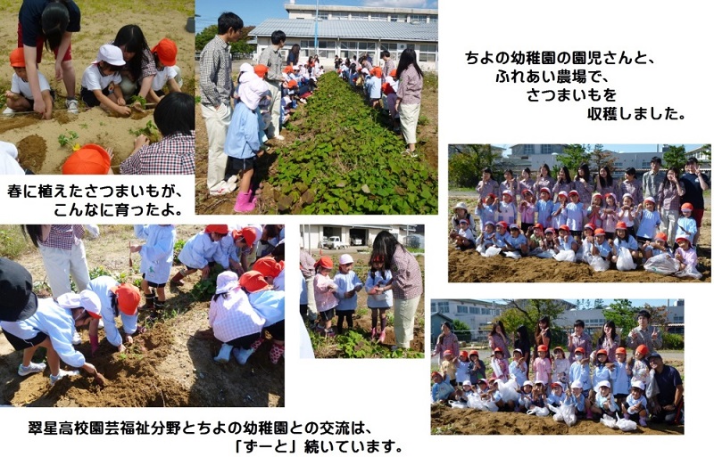 10月17日(火)ちよの幼稚園の園児さん55名と、園芸福祉分野2年生19名が、