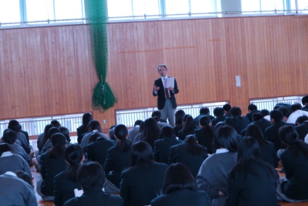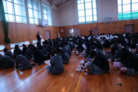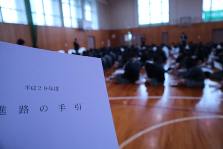 生徒個人に「進路の手引き」が配布され、進路についての話を聞きました。