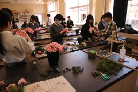 園芸福祉コースの生徒16名が参加し、技能検定2級、3級の合格を目指して練習をしています。